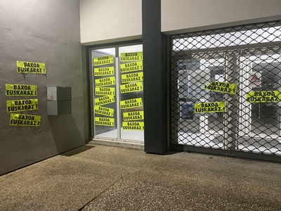 Bestalde, jakinarazten dizuegu « Azterketak euskaraz » kolektiboko guraso batzuek gure haurrek baxoa euskaraz pasa dezaten eskubideen alde aldarrikatu dutela Baionako eta Donapaleuko Hezkunde Nazionaleko ikuskaritzako egoitzen aitzinean.